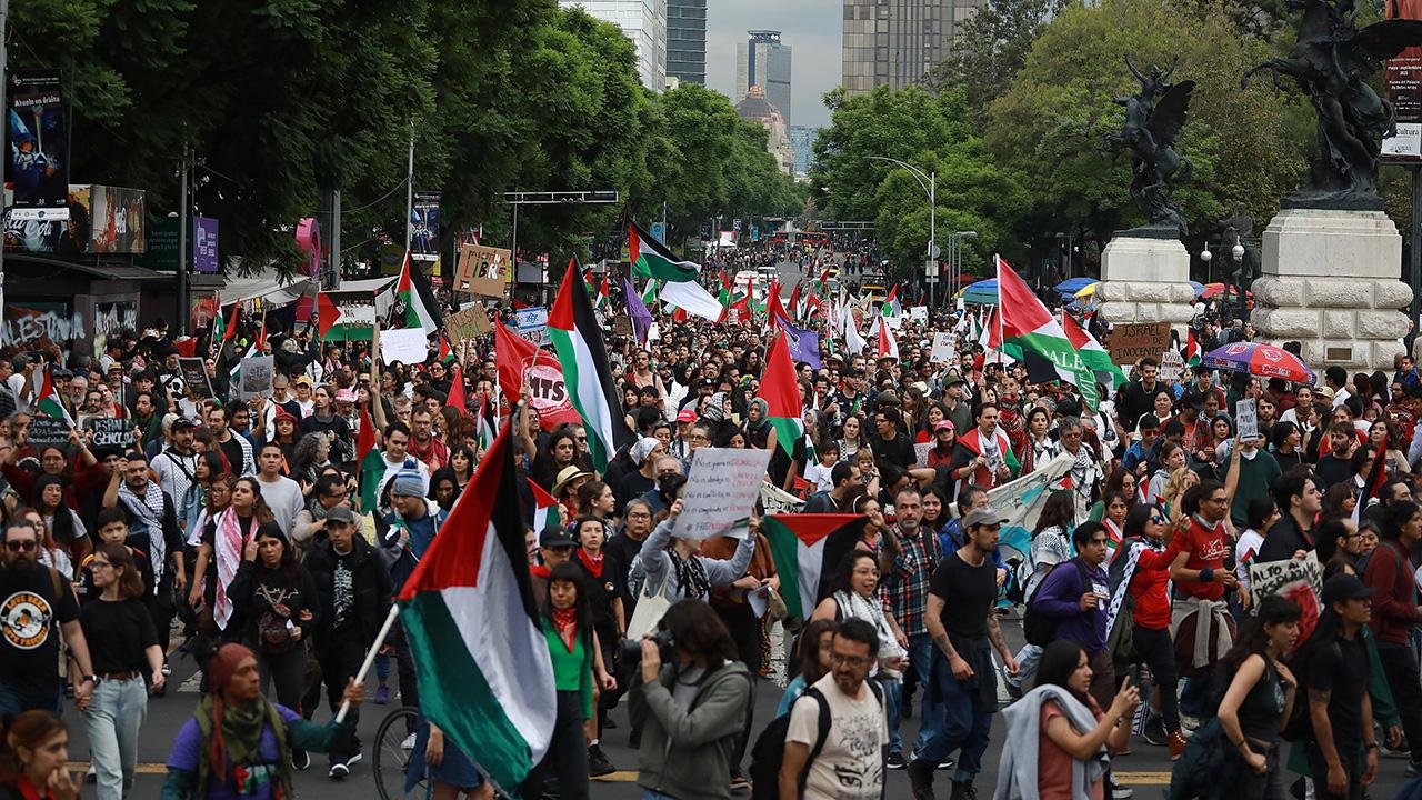 Meksika’nın başkenti Meksiko’da bir araya gelen Filistin destekçileri, Gazze’de ateşkesin “en hızlı şekilde” ilan edilmesi için gösteri düzenledi.