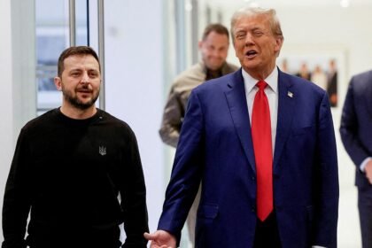 ABD Başkanı Trump ile Ukrayna Devlet Başkanı Zelenskiy, Trump’ın Mar-a-Lago’daki malikanesinde barış görüşmeleri için bir araya geldi. Görüşmeye girmeden önce kapıda basın mens...