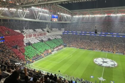Sarı-kırmızılı taraftarların karşılaşma öncesi dev Filistin bayrağı ve “Soykırımı durdurun” (Stop The Genocide) yazısıyla oluşturdukları koreografi, katil İsrail’in medyasının ...