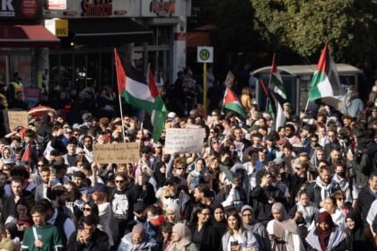 Eyalet Başbakanlığı önünde toplanan katılımcılar, Federal Meclis önünden geçerek Berlin’in sembollerinden Grosser Stern Meydanı’na yürüdü. Protestocular, Almanya’nın İsra...