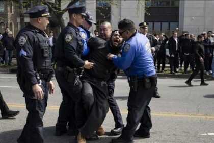 Brooklyn bölgesinde Filistin’e destek amaçlı gösteri yapan bir grup, İsrail’in aşırı sağcı Ulusal Güvenlik Bakanı Itamar Ben-Gvir’in konuşma yapacağı belirtilen bir sinagogun ö...