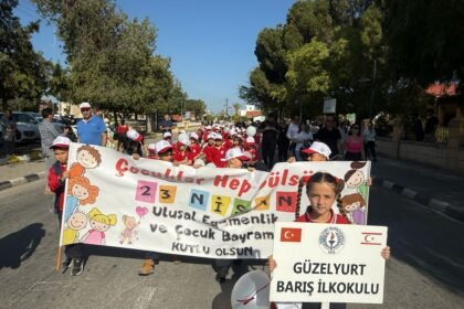 Güzelyurt’ta 23 Nisan Ulusal Egemenlik ve Çocuk Bayramı dolayısıyla bugün bölge okullarının katılımıyla kortej yürüyüşü düzenlendi. Güzelyurt Belediyesi’nden yapılan açıklamaya göre, Güzelyurt Kaymaka...