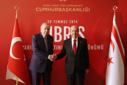 TC Cumhurbaşkanı Recep Tayyip Erdoğan, Cumhurbaşkanı Ersin Tatar ile bir araya geldi. Erdoğan, 20 Temmuz Barış ve Özgürlük Bayramı törenleri öncesinde Cumhurbaşkanlığı’nda Tatar ile görüştü....