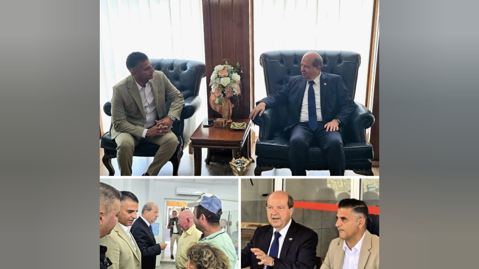 Cumhurbaşkanı Ersin Tatar’a ziyarette, Cumhurbaşkanı İletişim ve Basın Danışmanı Muslu Akgüney, Cumhurbaşkanı Özel Danışmanı Gökhan Güler ve Cumhurbaşkanı Siyasi İşler Danışmanı Ramazan Karal eşlik etti.