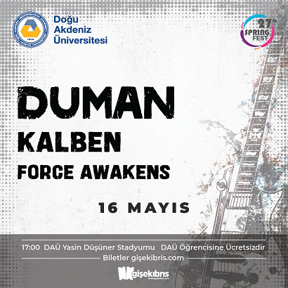 Doğu Akdeniz Üniversitesi (DAÜ) her yıl geleneksel olarak düzenlediği Bahar Festivali 14 – 17 Mayıs 2025 tarihleri arasında yapılıyor.