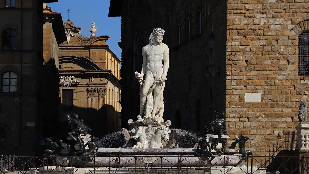 Piazza della Signoria’da bulunan ve heykeltıraş Bartolomeo Ammannati tarafından 1559 yılında yapılan anıta tırmanan turist, polis ekipleri tarafından suçüstü yakalandı.