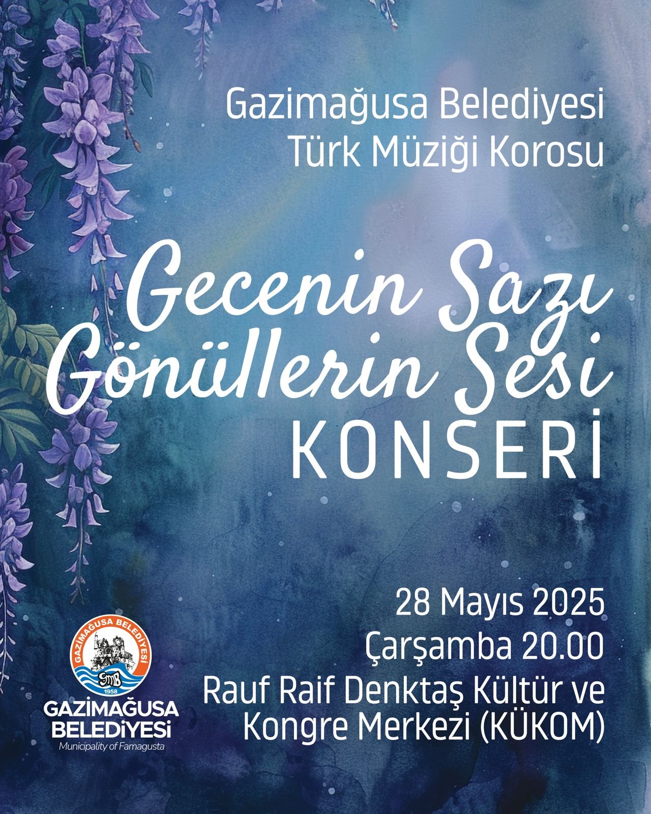 Gazimağusa Belediyesi Türk Müziği Korosu, “Gecenin Sazı, Gönüllerin Sesi” temasıyla konser verecek. Konser, 28 Mayıs Çarşamba akşamı saat 20.00’de Rauf Raif Denktaş Kültür ve Kongre Merkezi’nde (KÜKOM) gerçekleşecek.