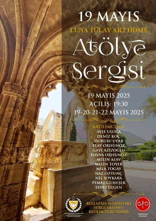 Luna Tülay Art Home üyelerinden oluşan atölye karma sergisi, 19 Mayıs 2025 Pazartesi günü saat 19.30’da Bellapais Manastırı Sergi Salonu’nda sanatsanatseverlerle buluşacak.