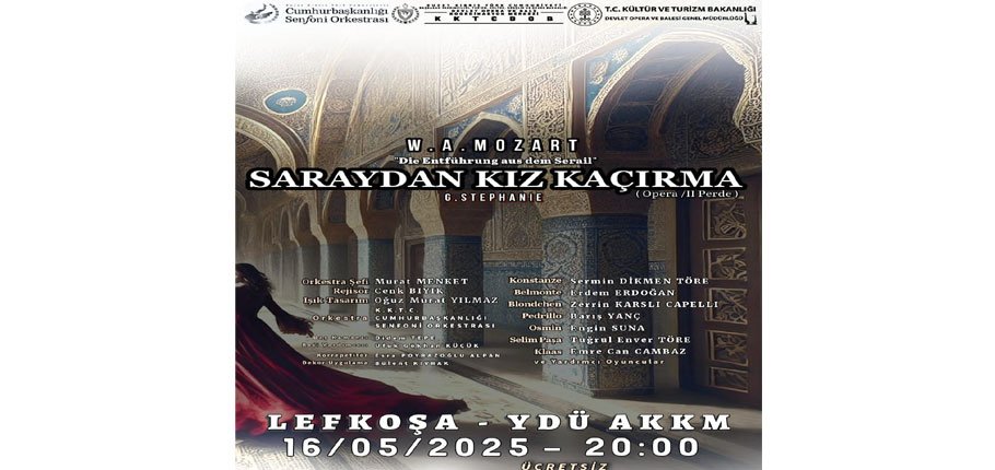 Ünlü besteci W. A. Mozart’ın bestelediği, Osmanlı İmparatorluğu’nun parlak dönemlerinden bir hikaye sunan ve 1782’de ilk sahnelendiği günden itibaren aralıksız olarak dünyanın en seçkin opera evlerinde sahnelenmeye devam eden “Saraydan Kız kaçırma” (Die Entführung aus dem Serail) operası Lefkoşa’da yeniden sanatseverlerle buluşuyor.