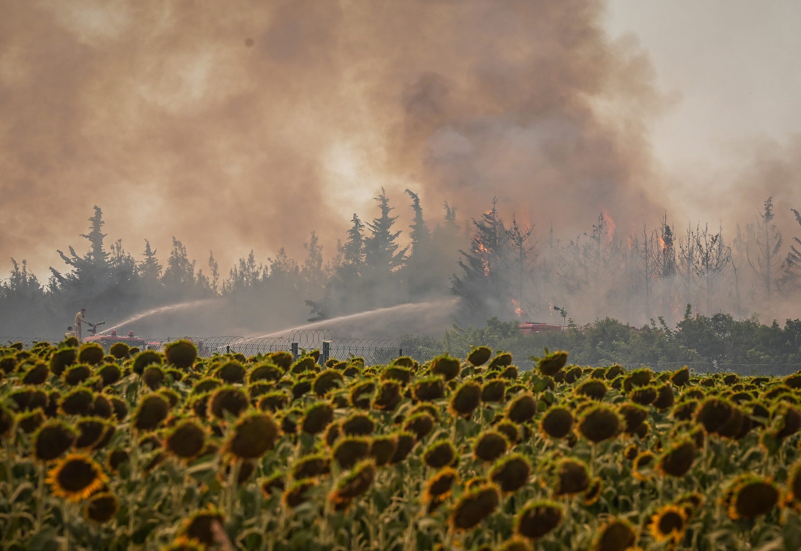 Havadan ve karadan müdahale edilen yangın, rüzgarın etkisiyle ayçiçeği tarlalarının bulunduğu bölge ve Kavakköy beldesi istikametine doğru ilerliyor.
